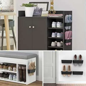 Show more If you're looking for an innovative way to store your footwear without sacrificing space, look no further than this exceptional Shoe Rack Set. Designed with the busy modern home in mind, these racks come in a set of four and include eight sticky mounts, making installation a breeze. Made from eco-friendly PC plastic, each rack is sturdy yet lightweight, perfect for any indoor or outdoor use, including RVs and campers. With multiple styles accommodated—be it sneakers, sandals, high heels, or slippers—organizing your shoe collection has never been more stylish or convenient.