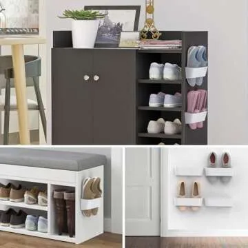 Yocice Wall Mounted Shoes Rack 6Pack with Sticky Hanging Strips, Plastic Shoes Holder Storage Organizer,Door Shoe Hangers (SM03-White-6)