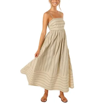 Show moreIntroducing the yoeasy Women's Striped Spaghetti Strap Cutout Maxi Dress, a stunning addition that effortlessly combines elegance with comfort. Designed with a keen fashion sense, this maxi dress is made from high-quality 100% polyester fiber, ensuring a soft, breathable, and lightweight feel that you will absolutely adore. The adjustable spaghetti straps and square neck design highlight your beautiful neckline, while the playful back cutout adds a trendy twist to this classic piece. With a flowy swing hem that reaches below the knee, it offers perfect movement, making it suitable for any occasion, from brunches to evening outings.