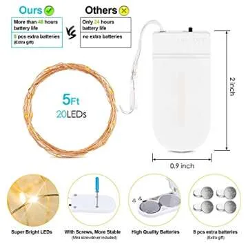 YOEEN 20 Pack 20 LED Fairy Lights Battery Operated [8 Extra Batteries] 5ft Mini String Lights Twinkle Lights Copper Wire Firefly Starry Lights for Wedding Party Mason Jars Christmas, Warm White