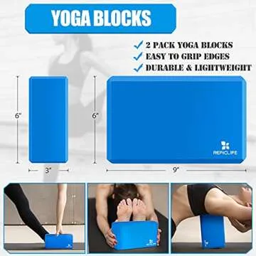 Yoga Blocks,Yoga Set,Yoga Accessories,Yoga Blocks 2 Pack with Strap,1 Mini Yoga Ball,3 Resistance Loop Bands,1 Resistance Band,1 Door Anchor,1 Jump Rope,Gym Bag & Manual for Yoga,Pilates,Stretching