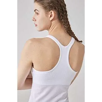 Yoga Racerback Tank Top with Built-in Bra for Women - Padded Sports Bra Fitness Workout Running Shirts (White, Medium)