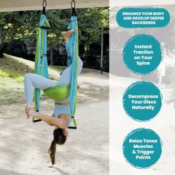 Show more Experience unparalleled relaxation and wellness with the incredible Versatile Fitness Aerial Swing Set, designed to provide instant back pain relief through effective traction and spinal decompression. Whether you are a seasoned yogi or a fitness newbie, this yoga swing offers a perfect blend of strength training, balance enhancement, and flexibility improvement. The trapeze design is not only functional but versatile enough for both indoor and outdoor use, allowing you to elevate your fitness routine wherever you may be.