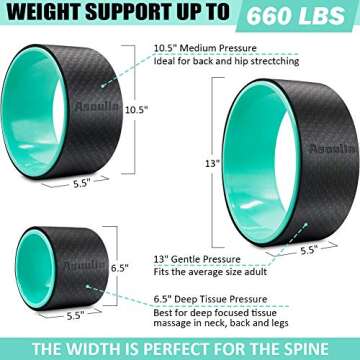 Show moreUnleash a new level of relaxation and fitness with our Yoga Wheel for Back Pain Relief. This exceptional 3 Pack Yoga Back Roller Wheel Set is meticulously designed to cater to all your stretching needs, enhancing your yoga practice while providing profound relief for back pain. Crafted with a robust design, our yoga wheel can support weights up to 660 lbs, making it a reliable ally for anyone looking to enhance their mobility and flexibility.