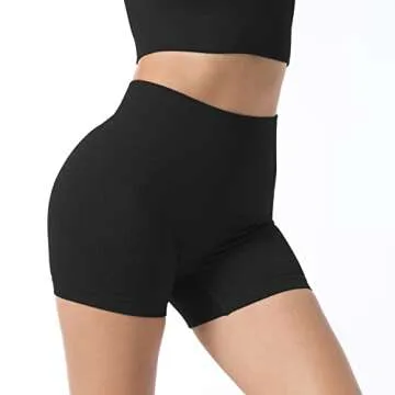 Yoga Workout Shorts Women High Waist Butt Lifting Waisted Seamless Ribbed Booty Scrunch Biker Gym Athletic Running Exercise Sport Bike Black Green Orange Sexy Compression Tummy Control Spandex