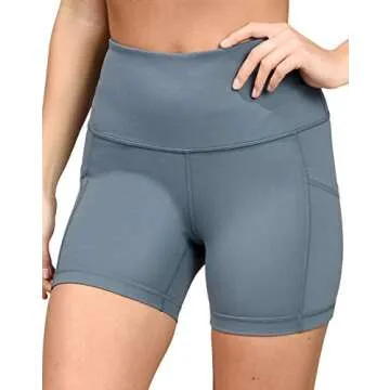 Yogalicious Ultra Soft Lightweight Hi Rise Shorts with Side Pocket - High Waist Yoga Shorts - Blue Reservoir 5" - Small