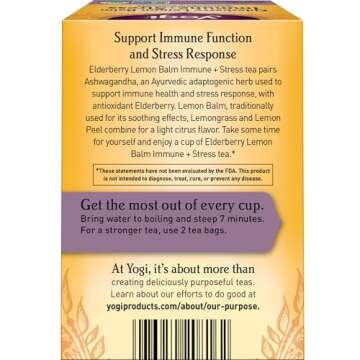 Yogi Organic Elderberry Lemon Balm Immune + Stress Herbal Tea, Caffeine Free, 16 Bags (Pack Of 6)