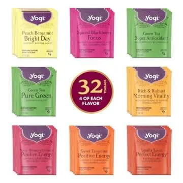 - Diverse Flavor Profiles: Indulge in a satisfying mix of flavors including Yogi Green Tea Pure Green, Yogi Peach Bergamot Bright Day, and Yogi Vanilla Spice Perfect Energy.