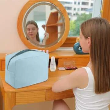YogoRun Large Preppy Stuff Makeup Bag Travel Toiletry Bag for Women Cosmetic Pouch in Water-resistant Nylon with Four Pockets (XL,Light Blue)