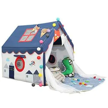 Show moreStep into a magical world with the YOIKO Kids Indoor Playhouse Tent. Designed for adventure and creativity, this spacious tent measures 50.4" x 47.3" and comes complete with enchanting star string lights and colorful accessories, perfect for sparking your child's imagination. Made from durable materials, the tent boasts a vibrant blue design that not only adds charm to your child’s playtime but also complements any room decor. Upgrade your child’s play space with this inviting and fun tent, ideal for indoor adventures!