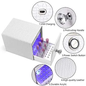 Yokilly Nail Drill Bit Holder,Blue UV Light Box for Grinding Heads Dustproof Stand Displayer Acrylic 48 Holes Nail Salon Organizers Manicure Tools with USB Charging(Not Inlcude Drill Bits)