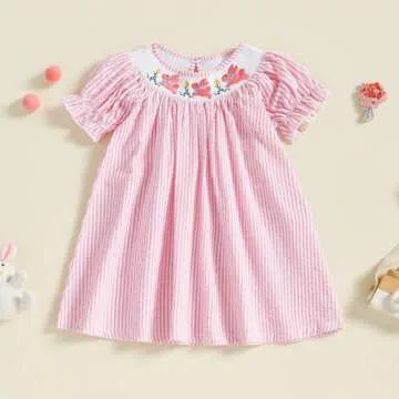 - Design Elements: With short puff sleeves, a round neck, and an adorable smocked design, this dress is uniquely crafted to be both stylish and cute.