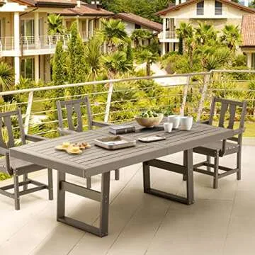 YOLENY Outdoor HDPE Dining Table, Patio Dining Table for 4-6 Persons with Weather Resistant & Easy Maintenance, Perfect for Garden, Backyard, Lawn, Grey