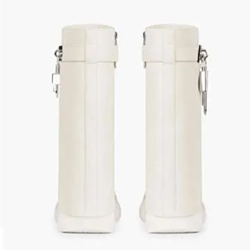 Yolkomo Women's Wedge Heel Platform Boots Fold Over Wide Calf High Boots Punk Goth Wedge Boots High Fashion Zipper Leather Lock Boots Round Toe Buckle Strap Mid Calf Boots White Size 8