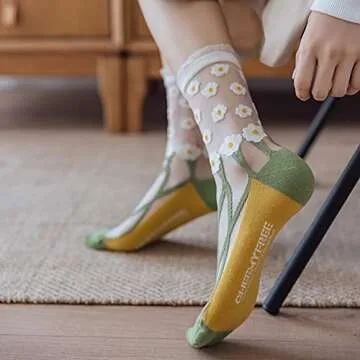 Yomutiur Womens Sheer Socks, Summer Transparent Thin Mesh Lace Elastic Jacquard Crystal Glass Socks,One Size