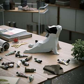 Yona DIY white Yoga French Bulldog Papercraft kit, Abstract Low Poly Animal DIY kits, Home decor, 3D Puzzle, kids crafts kits, Gift, origami 3D, Paper sculpture, Papercraft set for adults