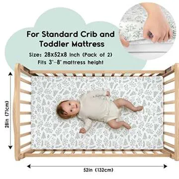 Yoofoss Baby Crib Sheets for Boys Girls, Fitted Crib Sheet 2 Pack for Standard Crib and Toddler Mattress, Super Soft Microfiber Baby Sheet 28x52x8in(Green+Leaf)