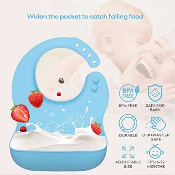 Yoofoss Silicone Baby Bibs for Babies and Toddlers, 3 Pcs Baby Feeding Bibs Waterproof Baby Bibs for Boys and Girls, BPA Free, Easy Clean, Grey/Green/Blue