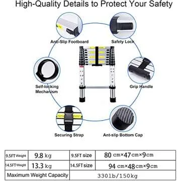 Yooikeey® 14.5FT Telescoping Ladder, Aluminum Telescopic Extension Ladder EN131 and CE Standard, Lightweight Collapsible Ladder Max Load 330lbs, Portable Folding Ladder for Home, Outdoor