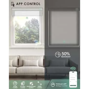 Show more Enhance your living space with the Yoolax Motorized Blinds, an innovative solution for modern home decor that combines functionality and style. Crafted from high-quality 50% blackout jacquard white material, these smart blinds are designed to filter harsh sunlight while maintaining your privacy during the night. The sophisticated fabric is not only fade-resistant and durable, ensuring years of use, but it also exudes elegance with its matching color front and back. Easy installation makes it a perfect choice for your living room, office, or study room, allowing you to transform your environment effortlessly.
