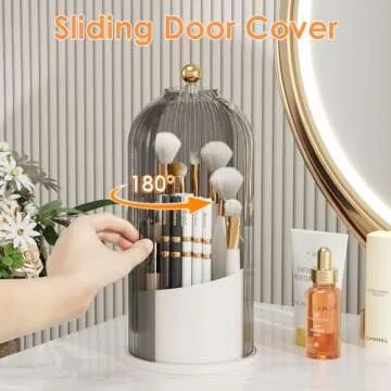 Show moreTransform your makeup organization with the YOOLENS Makeup Brush Holder with Lid, a must-have accessory for every makeup lover. This innovative brush holder features a 360-degree rotating base, allowing you to easily access your favorites without rummaging through a cluttered space. Its enclosed sliding door design ensures that no dust particles or bacteria can settle on your brushes, keeping them clean and ready for use. Elevate your vanity setup with this functional yet stylish storage solution that complements any decor.