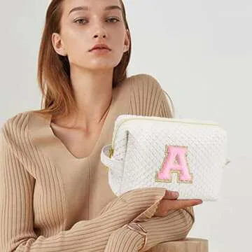 Show more Discover the charm and functionality of our exquisite personalized initial patch design makeup bag, crafted with careful attention to detail. Each letter is hand-stitched using cotton terry towel embroidery, ensuring that not only does it stand out visually, but it's also incredibly comfortable to touch. This isn't just your average makeup bag—it's a statement piece that adds a personal touch to your travel essentials.