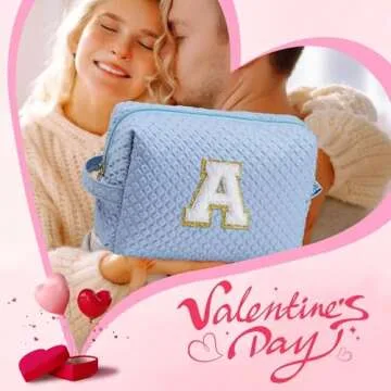 YOOLIFE Initial Makeup Bag - Birthday Gifts for Women Her Mom Friend Sister Teacher kids Teens Daughter Bridesmaid, Blue Initial Makeup Bag Cosmetic Bag K