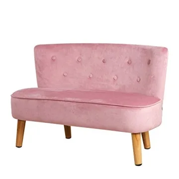 Show more Introduce your little one to a world of comfort and style with the Yoonnie Room 2-Seat Kid Sofa Couch. Perfectly designed for ages 3 to 6, this adorable sofa combines premium materials with thoughtful craftsmanship, ensuring that your child has a cozy space for reading, relaxing, or playing with friends. Made from a sturdy wooden and plywood slat frame and topped with soft, luxury velvet fabric, this kid's sofa chair not only meets the highest safety standards but also adds a pop of color to any room with its charming pink hue. It's your child's own stylish retreat!