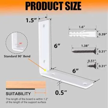 Yoozell Floating L Shelf Brackets, White Shelf Brackets Heavy Duty with Screws, 90° Angle Metal Shelf Brackets & Supports for Kitchen, Bathroom, Warehouse, 160 lb Load Capacity-(6"x6"-12Pack)