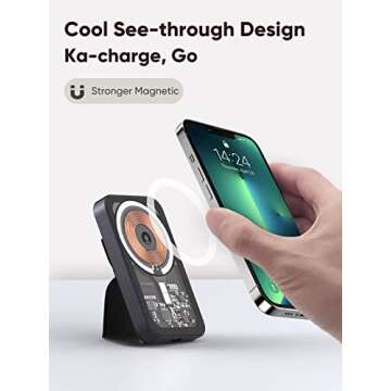 YOOZER Magnetic Battery Pack 5000mAh Magnetic Wireless Portable Charger 18W USB-C Transparent Power Bank with Foldable Stand for iPhone 13/13 Pro/13 Pro Max/12/12 Pro/12 Pro Max