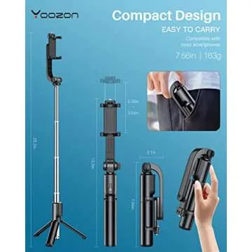 What truly sets the Yoozon tripod apart is its transformative capability; effortlessly switch from a sleek selfie stick to a sturdy tripod in just seconds. This means you're always ready, whether you're recording a video or taking still photos. The adjustable height ranges from a compact 7.9 inches to a remarkable 26.6 inches, making it perfect for various shooting scenarios, whether it's a cozy group selfie or breathtaking landscapes.