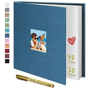 Yopih Photo Album Self Adhesive with Writting Space for 4x6 5x7 8x10 Pictures Scrapbook Album Linen Hardcover Blue DIY Length 11x10.6 Inch 40 Pages with A Metallie Pen