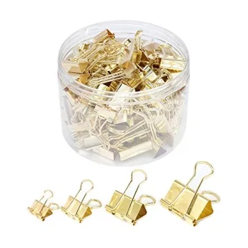 YOPINK Binder Clip Paper Clamps - 100 Pcs in Assorted Sizes - Gold Finish