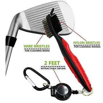 Yoport® Golf Club Brush and Club Groove Cleaner 2 Ft Retractable Zip-line Aluminum Carabiner, Lightweight and Stylish, Ergonomic Design, Easily Attaches to Golf Bag (Black+Black)