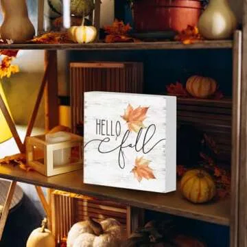 Yorhifa Hello Fall Wood Box Sign, Maple Leaves Desk Shelf Decor, Fall Decorations for Home, Autumn Decor, Fall Home Decor, Farmhouse Fall Wooden Box Block Sign for Home Shelf Desk Decor