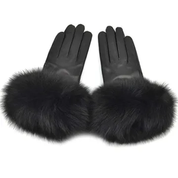Yosang Women Genuine Lambskin Leather Winter Lined Gloves with Fox Fur Trim