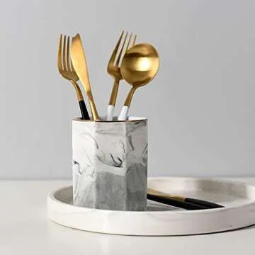 Not only does this elegant pen holder provide functionality, but it also serves as a vibrant decorative piece. The beautifully crafted **marble design** stands out with its eye-catching aesthetics, making it an ideal choice whether you’re working from home, studying, or simply looking to beautify your desk area.