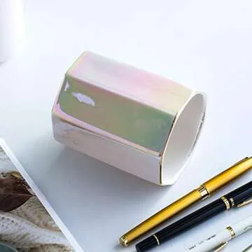 YOSCO Ceramic Desk Pen Holder Stand Cute Pencil Cup Pot Desk Organizer Makeup Brush Holder (Pearl)