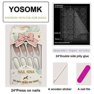 Show more Introducing the YOSOMK Charms White French Tip Long Press on Nails – the perfect blend of elegance and functionality designed to elevate your nail game. Made from high-quality acrylic ABS material, these press-on nails offer a glossy finish that mimics the natural look of fingernails. With their firm yet flexible structure, these nails are not only durable but also easy to apply, making them an ideal choice for both beginners and professionals in the nail art realm. Each package contains 24 gorgeous nails in 12 different sizes, ensuring a perfect fit for every finger. Accompanying the nails are essential tools including a nail file, jelly double-sided adhesive tabs, and a wooden stick to help you achieve your desired look effortlessly.