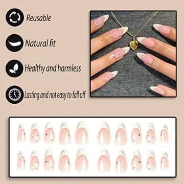 Show moreIntroducing the YOSOMK French Tip Press on Nails, the ultimate solution for achieving stunning nails effortlessly. Designed for women who love a chic and elegant look, these medium-length nude almond fake nails boast a glamorous glossy finish adorned with exquisite rhinestones. Each set is packaged conveniently, allowing you to achieve your desired nail aesthetic in minutes without the hassle of a salon visit. Made from durable materials, these full cover acrylic nails promise longevity and resilience, ensuring your manicure looks perfect for all occasions. Get ready to elevate your style with nails that leave a lasting impression!