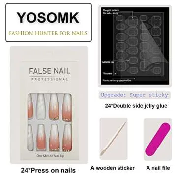 Show moreIntroducing the YOSOMK Luxurious Long Press On Nails – a stunning addition to your beauty routine that effortlessly blends glam and durability. Each package contains 24 pieces of full-cover nail tips available in 12 sizes, ensuring a perfect fit for everyone. Made from high-quality ABS acrylic material, these nails are designed to be glossy, firm, and not fragile like other brands. They're soft to the touch, mimicking the feel of natural nails while maintaining their stunning appeal even under daily activities. Whether you're typing, cleaning, or simply going about your day, YOSOMK nails are proven to last beautifully for 1 to 3 weeks with proper application.