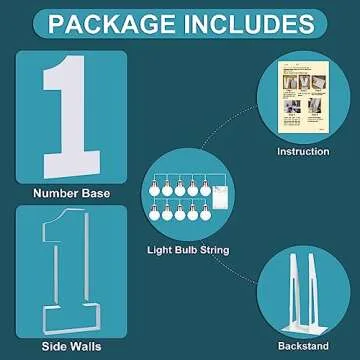 Show moreIntroducing the YOSWPP 4FT Marquee Numbers – the ultimate decorative solution for your special events! Crafted with precision, this large mosaic balloon frame is designed to enhance any celebration, be it a birthday party, wedding, or anniversary. Measuring 4FT tall, the stunning light-up numbers create a charming focal point that captures attention and transforms your space into a personalized haven. The kit includes expertly pre-cut foam boards, comprehensive operating instructions, and a lovely light string that promises to illuminate your events brightly. Please note, the frame requires 3xAA batteries for operation (not included), while a glue gun is also suggested for optimal assembly and stability.