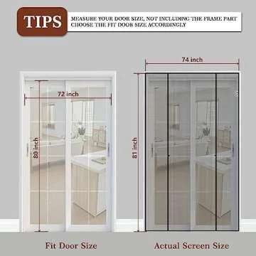 The screen mesh size is 74 inches wide by 81 inches high, which fits standard sliding doors measuring up to 72 inches by 80 inches.