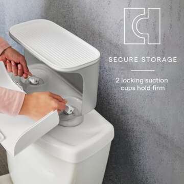 Transform your bathroom experience with the YouCopia Hideaway Toilet Cabinet, an innovative over-the-toilet organizer that combines style, functionality, and convenience. Designed with your cluttered bathroom storage needs in mind, this cabinet securely attaches to both lever and button flush toilets, thanks to its two powerful suction cups that grip the tank firmly. Suitable for flat (non-curved) tank lids, it's the perfect solution to keep your essentials organized without sacrificing space....