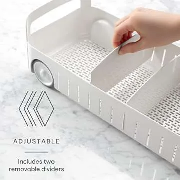 YouCopia RollOut Caddy Rolling Storage Bin with 2 Adjustable Dividers and Removable Basket for Kitchen and Bathroom Under Sink Organization, 8" Wide, White