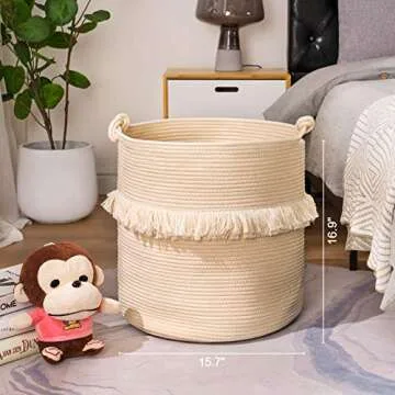 YOUDENOVA Large Woven Rope Storage Basket, Baby Nursery Hamper for Toy&Clothes, Boho Laundry Hamper for Living Room, 15.7 inchx16.9 inch