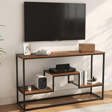 Available in two size options, either 47.3' x 15.7' x 31.5' or a larger 55.1' x 15.7' x 31.8', this TV console offers generous space with three additional shelves for your storage needs. The waterproof wooden surface not only looks elegant but is also easy to clean and maintain, catering to modern lifestyles focused on convenience. Our TV stand marries modern industrial design with practicality—its simple silhouette and chic wood and metal combination make it a statement piece in any home.
