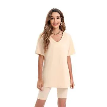Show moreIntroducing the Youdiao Women Two Piece Outfits, a stylish and versatile fashion statement that will elevate your summer wardrobe! This trendy set combines an oversized V-neck T-shirt with high-waisted biker shorts, making it the perfect blend of comfort and chic. Crafted from a premium mix of cotton and polyester, this outfit offers a soft and cozy feel, ensuring you'll look and feel your best, whether you're hitting the gym or meeting friends for lunch. The tunic-length top is designed with a loose fit, providing ample coverage while keeping you effortlessly fashionable.