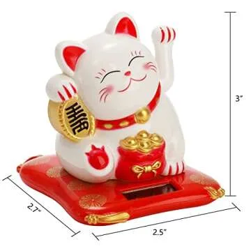 Youeon 2 Pack Lucky Cat Waving Arm, Small Solar Waving Cat, Cute White Beckoning Cat Welcoming Cat, Maneki Neko as Good Luck Decor for Home, Office, Car, Stores, Restaurants