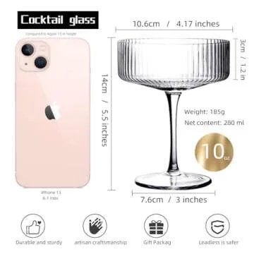 Show moreElevate your mixology experience with the YOUKI Martini Glasses Set of 4. Crafted to perfection, these 10 oz coupe glasses are a delightful addition to any barware collection. Their sleek design and exquisite quality deliver a touch of elegance, making them the ideal choice for serving not just martinis, but a range of cocktails—from cosmopolitans to margaritas. Whether you're hosting a cocktail party or enjoying a quiet evening at home, these glasses blend sophistication with functionality.
